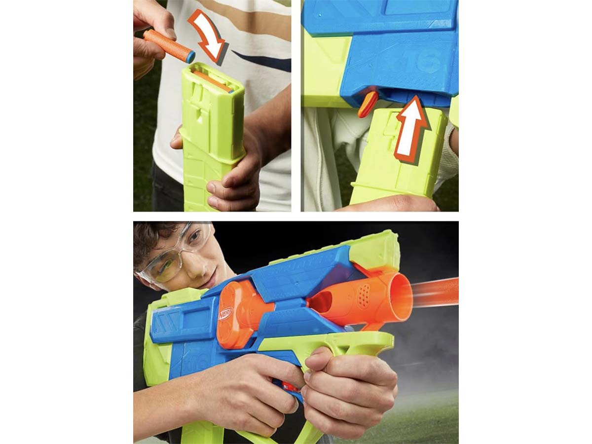 Հավաքածուն ունի 16 փամփուշտի մագազին և հարմար կառուցվածք, որը թույլ է տալիս հեշտ կառավարել բլաստերը խաղի ընթացքում։ Այն զարգացնում է արագ արձագանքը, շարժողական ակտիվությունը և թիմային խաղի հմտությունները՝ ապահովելով ակտիվ ժամանց ներսում և դրսում։