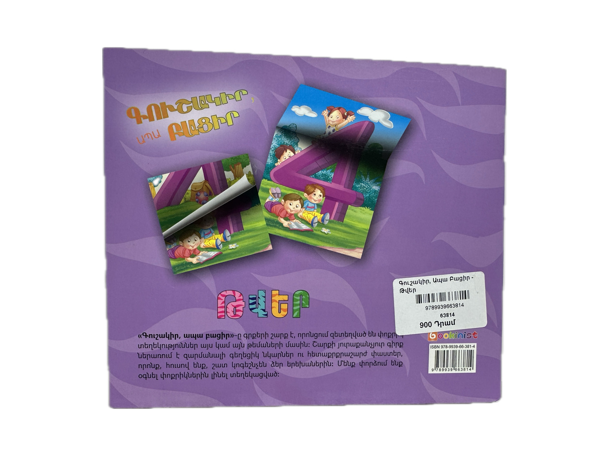 Այս գիրքը փոքրիկներին հրավիրում է հետաքրքիր խաղի՝ գուշակելու և բացահայտելու միջոցով։ Յուրաքանչյուր էջում երեխան հանդիպում է հարցի կամ հուշման, իսկ պատուհանիկը բացելով՝ գտնում է ճիշտ պատասխանը։