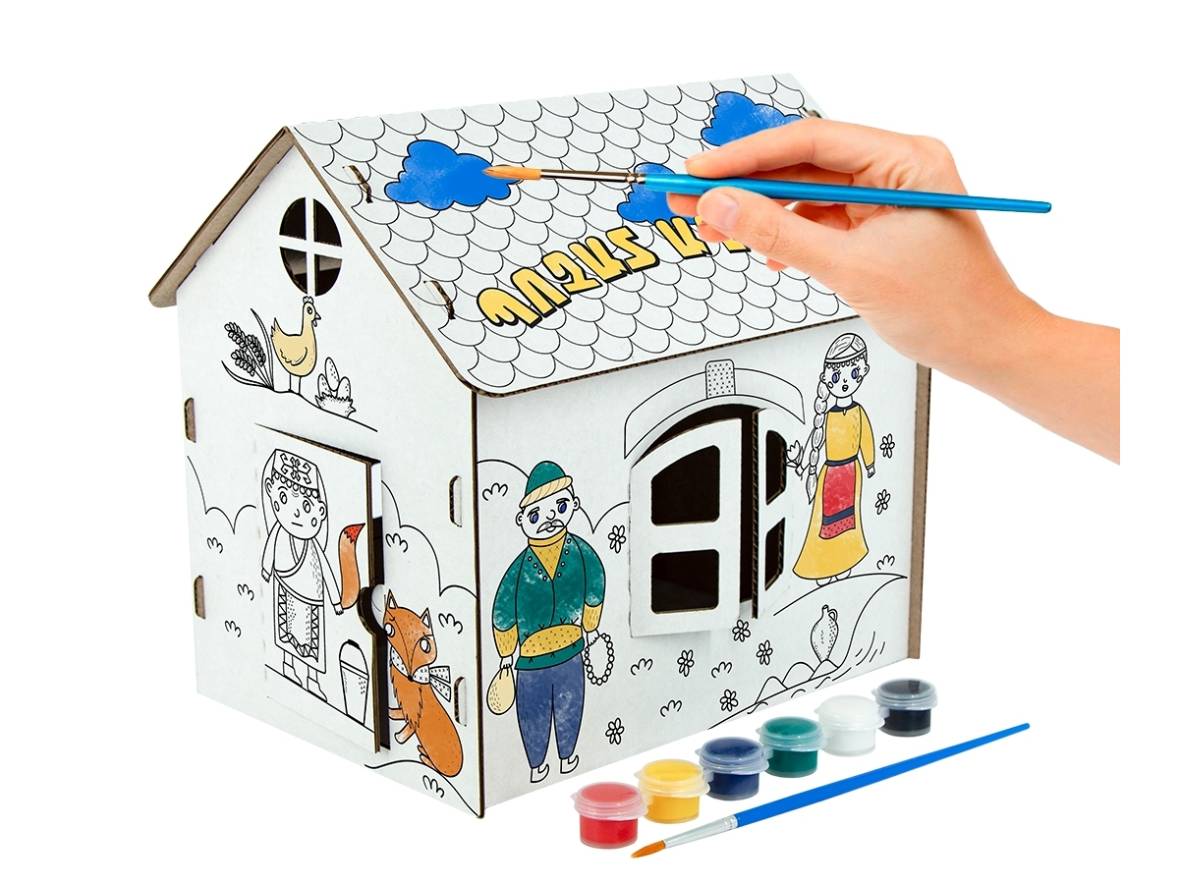 Եռաչափ տնակը հավաքելու համար անհրաժեշտ է պարզապես իրար միացնել 5 կտորները, ներկել և պարզապես ազատություն տալ երևակայությանը։