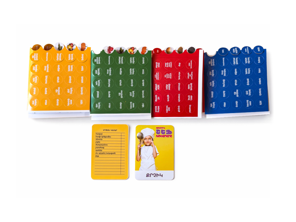 🃏 Բաղադրիչներ — 99 բաղադրիչներով և 50 ճաշատեսակներով խաղաքարտեր, խաղային տախտակներ