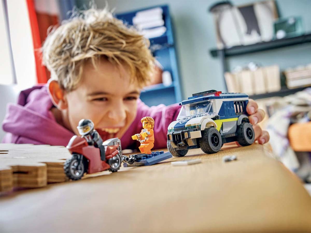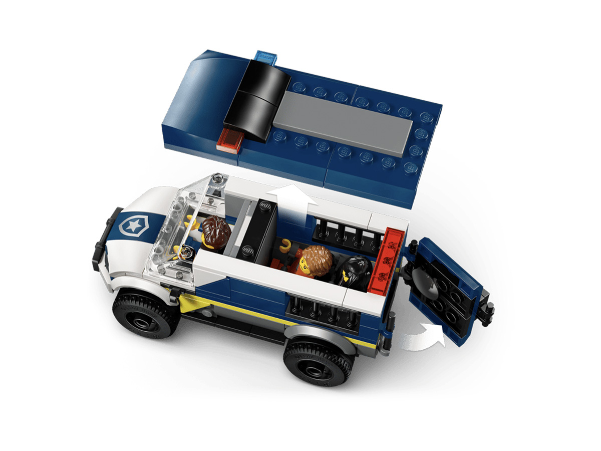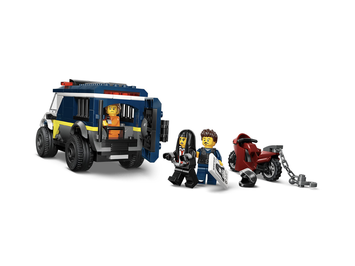 LEGO City Police Prisoner Transport Van հավաքածուն առաջարկում է կառուցել ոստիկանական մեքենա բանտախցով և մոտոցիկլ՝ ստեղծելով դինամիկ հետապնդման և փախուստի սցենարներ։ Հավաքման ընթացքում երեխաները կառուցում են ամբողջական խաղային համակարգ՝ մեքենայով և լրացուցիչ դետալներով։