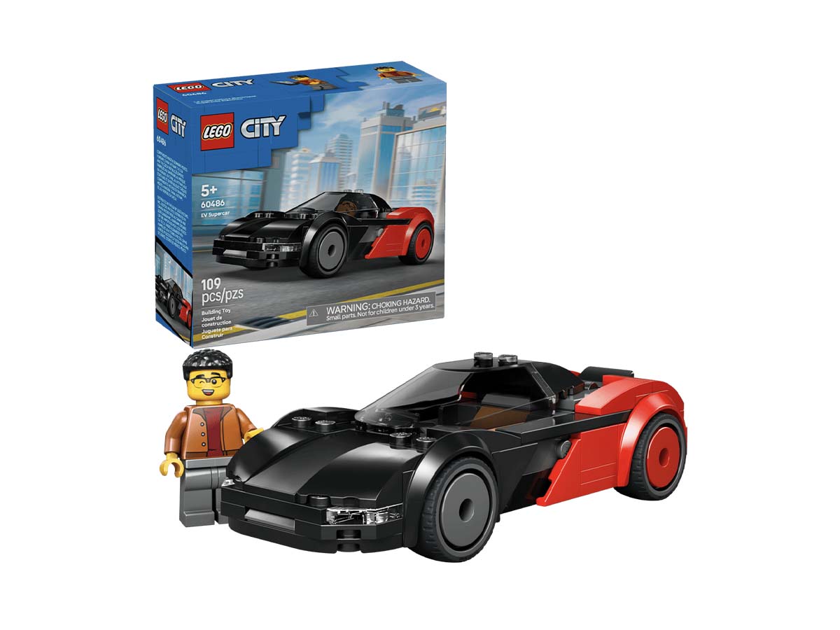 LEGO City EV Supercar հավաքածուն առաջարկում է կառուցել ժամանակակից էլեկտրական սպորտային մեքենա՝ կարմիր և սև գունային դիզայնով։ Երեխաները հավաքում են մեքենան քայլ առ քայլ և ստանում իրական տեսք ունեցող մոդել՝ մանրակրկիտ դետալներով։