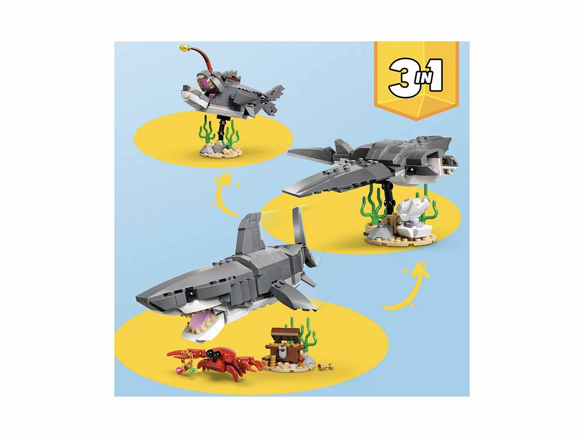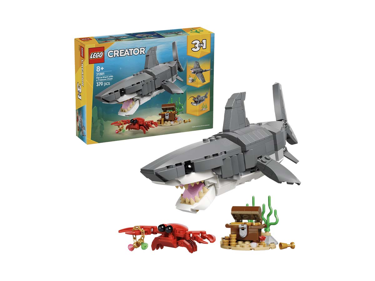 LEGO Creator Fierce Shark հավաքածուն առաջարկում է կառուցել տպավորիչ շնաձուկ գանձարկղով, որը կարելի է հետագայում վերափոխել այլ ծովային արարածների։ Հավաքման ընթացքում երեխաները ստեղծում են մանրամասն մոդել՝ շարժվող տարրերով և դեկորատիվ հենարանով։