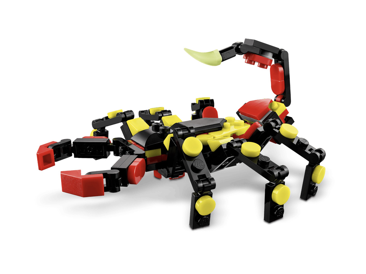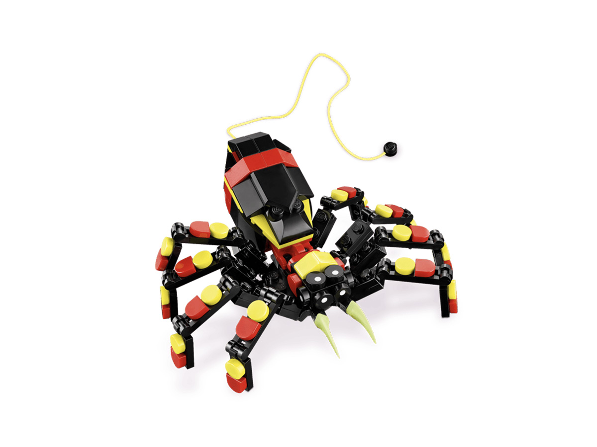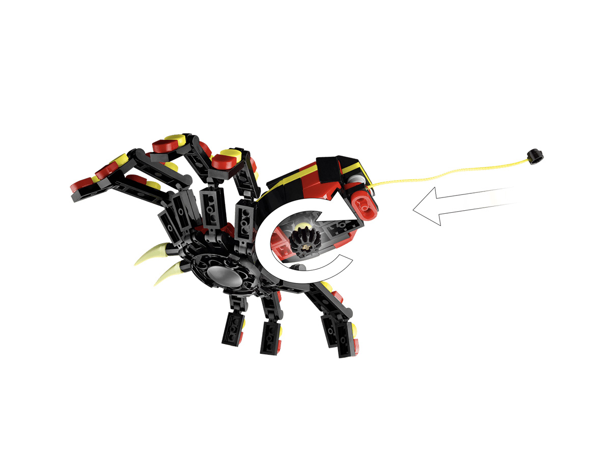 ⚙️ Հատկություններ — 3-ը 1-ում կառուցման տարբերակներ (սարդ, կարիճ, օձ), շարժվող մասեր (ոտքեր, մարմին), քաշվող սարդոստայն