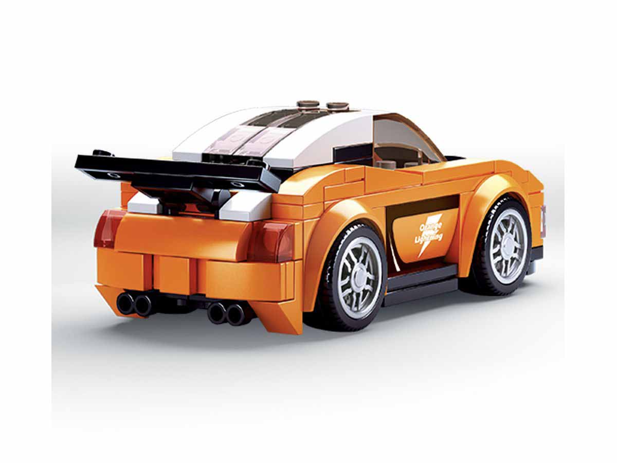 ⚙️ Առանձնահատկություններ — մրցարշավային ավտոմեքենա, կոմպակտ սպորտային դիզայն, շարժվող անիվներ, վառ դիզայն (նարնջագույն), հավաքվող մոդել, համատեղելի այլ կոնստրուկտորների հետ