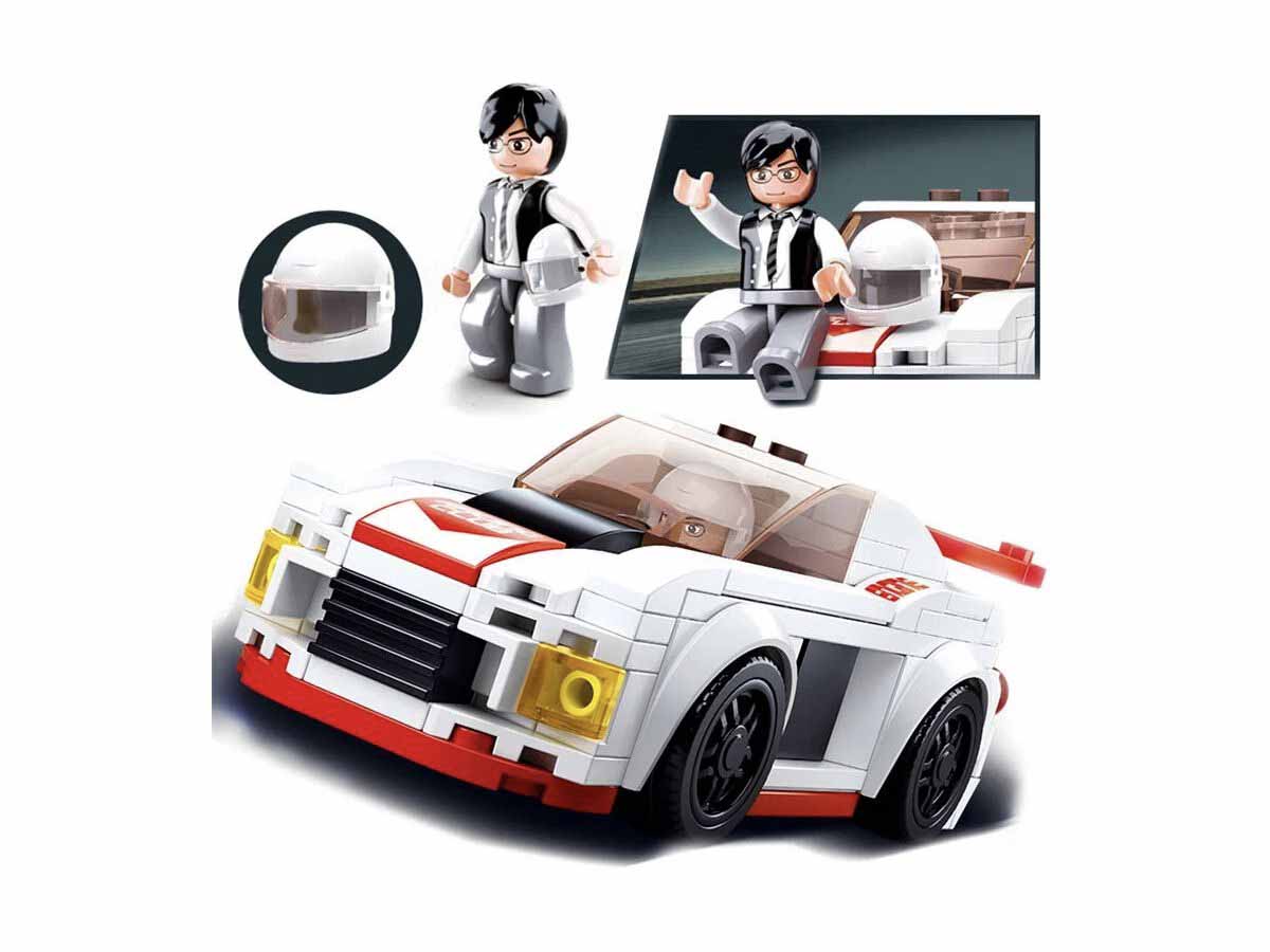 Sluban Model Bricks M38-B0633C կոնստրուկտորը բաղկացած է 152 դետալից և նախատեսված է մրցարշավային ավտոմեքենայի հավաքման համար։ Սա «Knight» ոճի սպորտային մեքենա է՝ սպիտակ-կարմիր դիզայնով և կոմպակտ կառուցվածքով ։